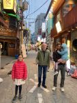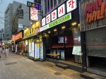 We couldn’t check in until 4 o’clock so we left our bags at the hotel reception we headed out for coffee and cake at a nearby cafe. Later we went in search of supper at a gimbabap restaurant. Small point of detail: here they eat with metal chopsticks. Lots of narrow alleys full of brightly lit and loud food outlets.