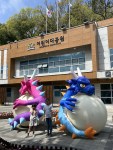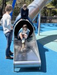 Much-needed lie-ins all round then by bus to the Children’s Grand Park, whose name hardly does it justice as it’s an enormous area of forest rails that wind up the creek , with playground attractions on the way. A and L were almost the only children, apart from a school class, but there were lots of seniors walking and exercising energetically. Apparently Busan has the second lowest fertility rate in South Korea which, in turn, has the lowest rate globally. 21% of the population is over 65.