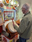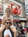 Strolled the hyper-active and vast covered Dotonbori market of shops and eating places then stopped for takoyaki (octopus balls) before hitting the nearest arcade. Taiko No Tatsujin was a challenge, partly because of the standard high background noise but also because it was a Japanese language version, so that Catherine had to translate the menus and song titles. Still, I managed to knock out a decent William Tell overture and Amara cleared a couple of numbers, too.